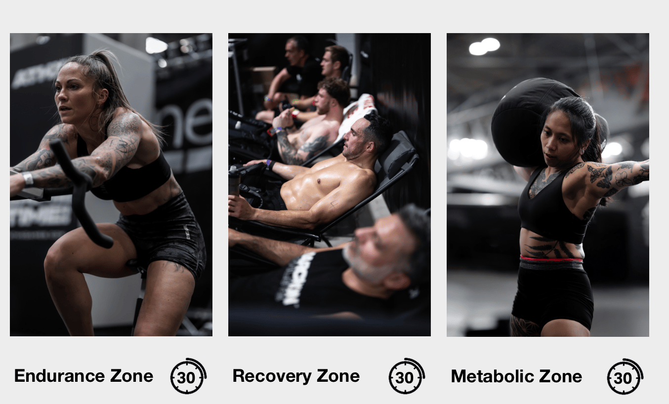 La Endurance Zone alterne course et ergomètre, avec des distances imposées et des changements fréquents.